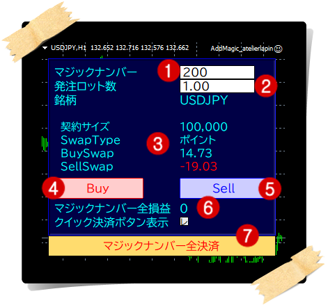 ①任意のマジックナンバーを付けて発注ができます。