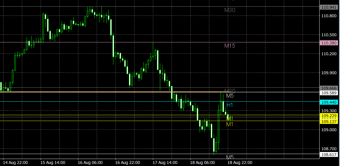 しかも時間足に応じて自動的に色を変更し、「M15」とか「H4」という文字列を自動で描画してくれるので