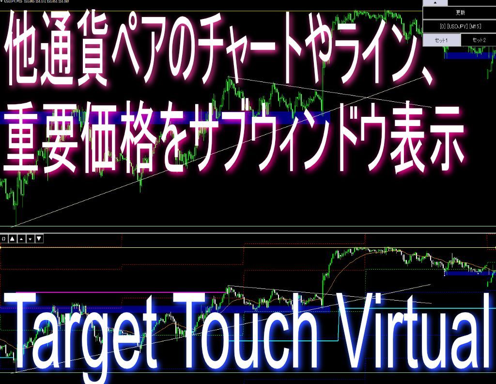 他チャート(通貨ペア)のラインや限界運動量等の重要ポイントとローソク足をサブウィンドウ化【Target Touch Virtual】