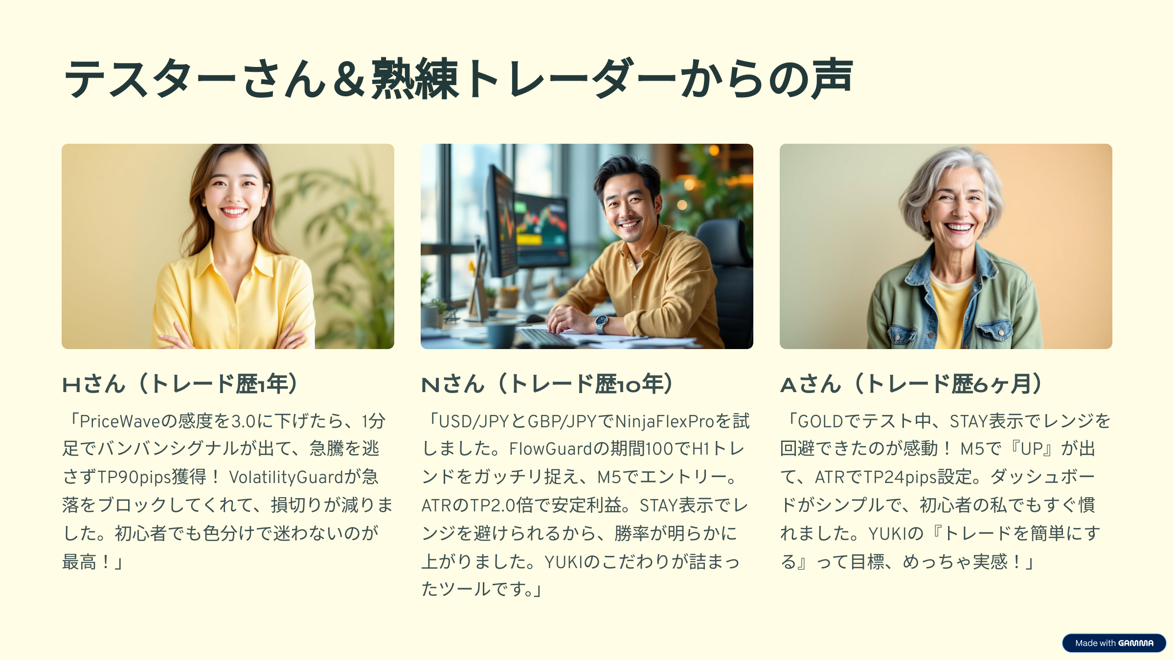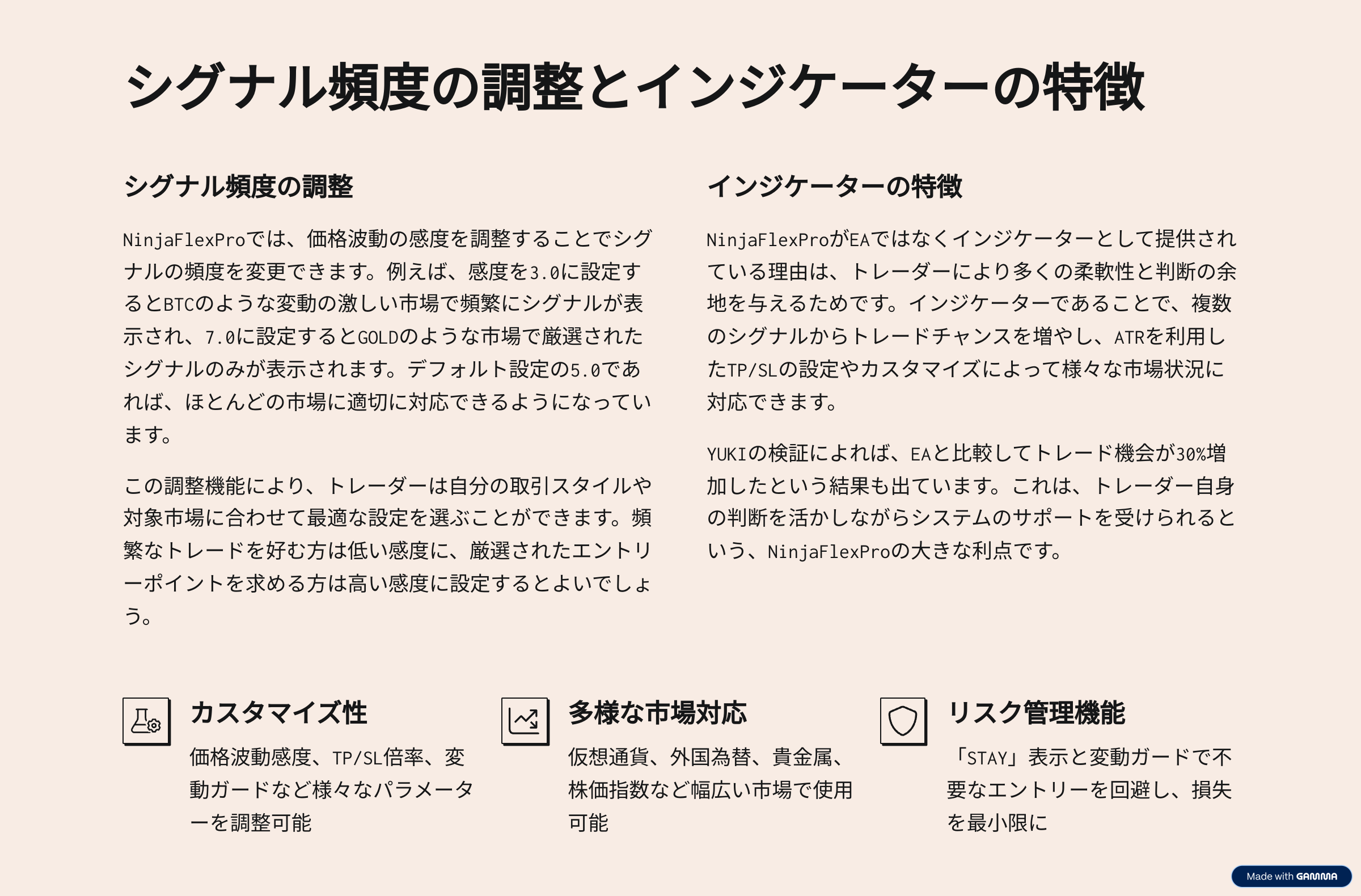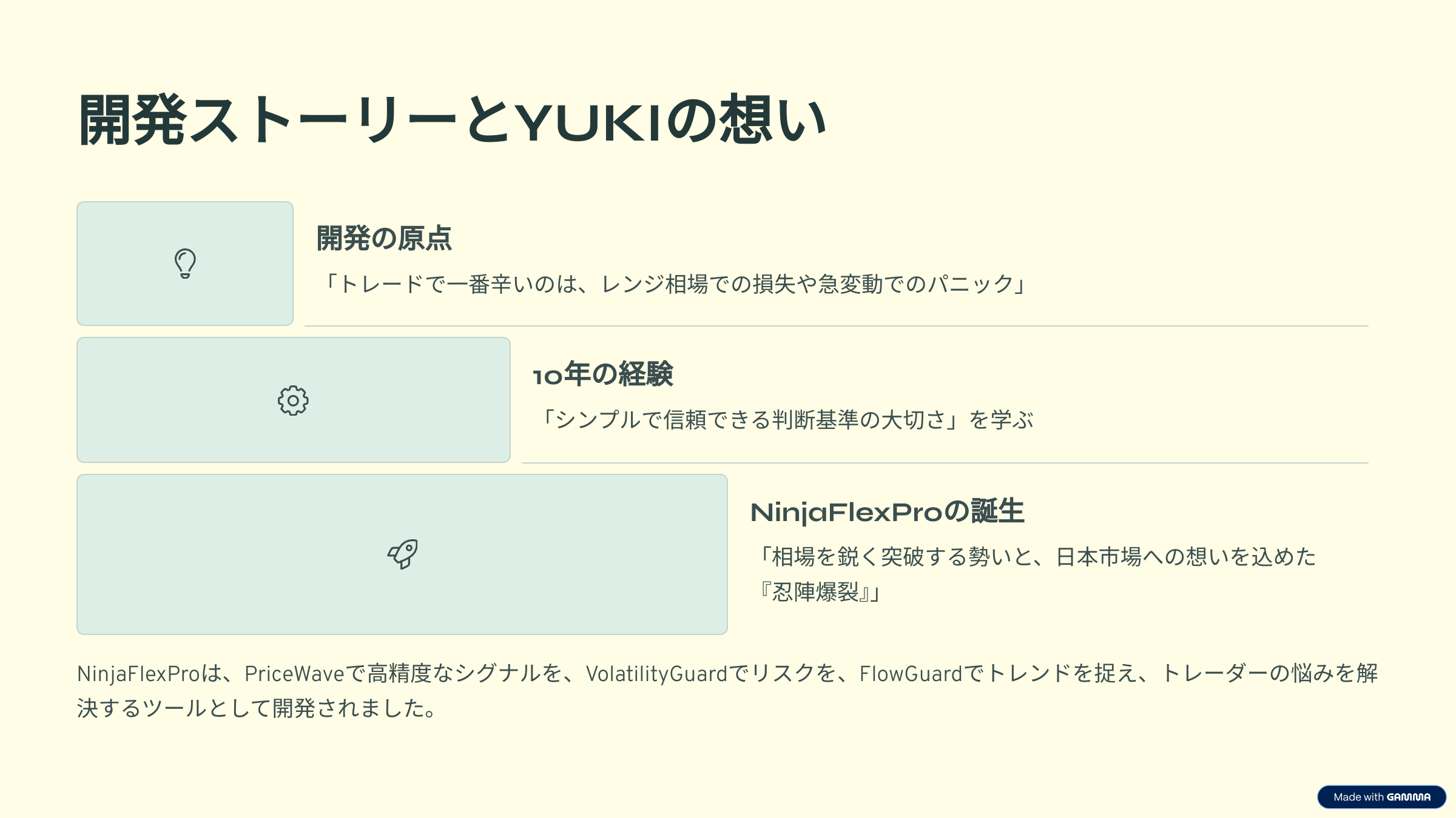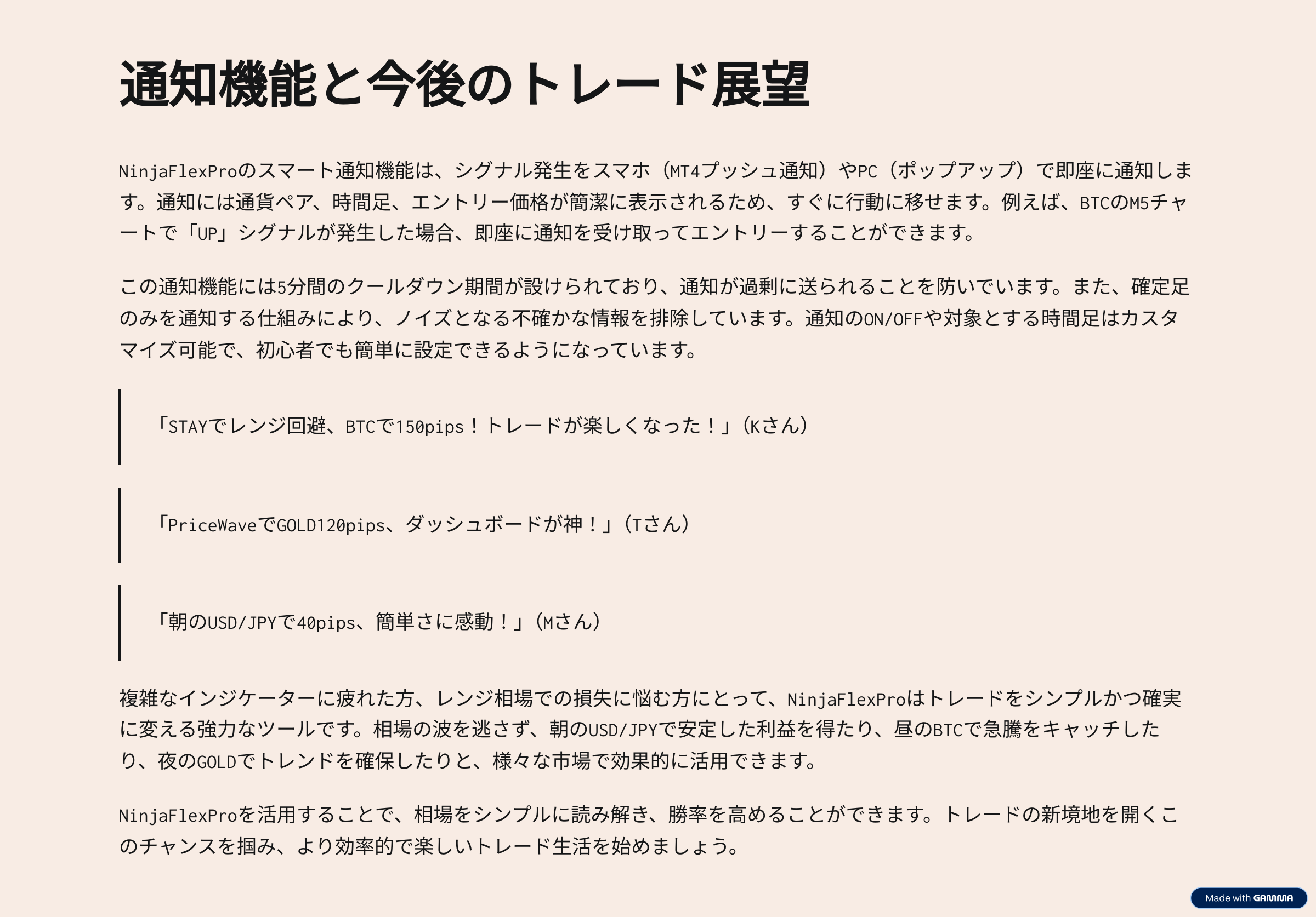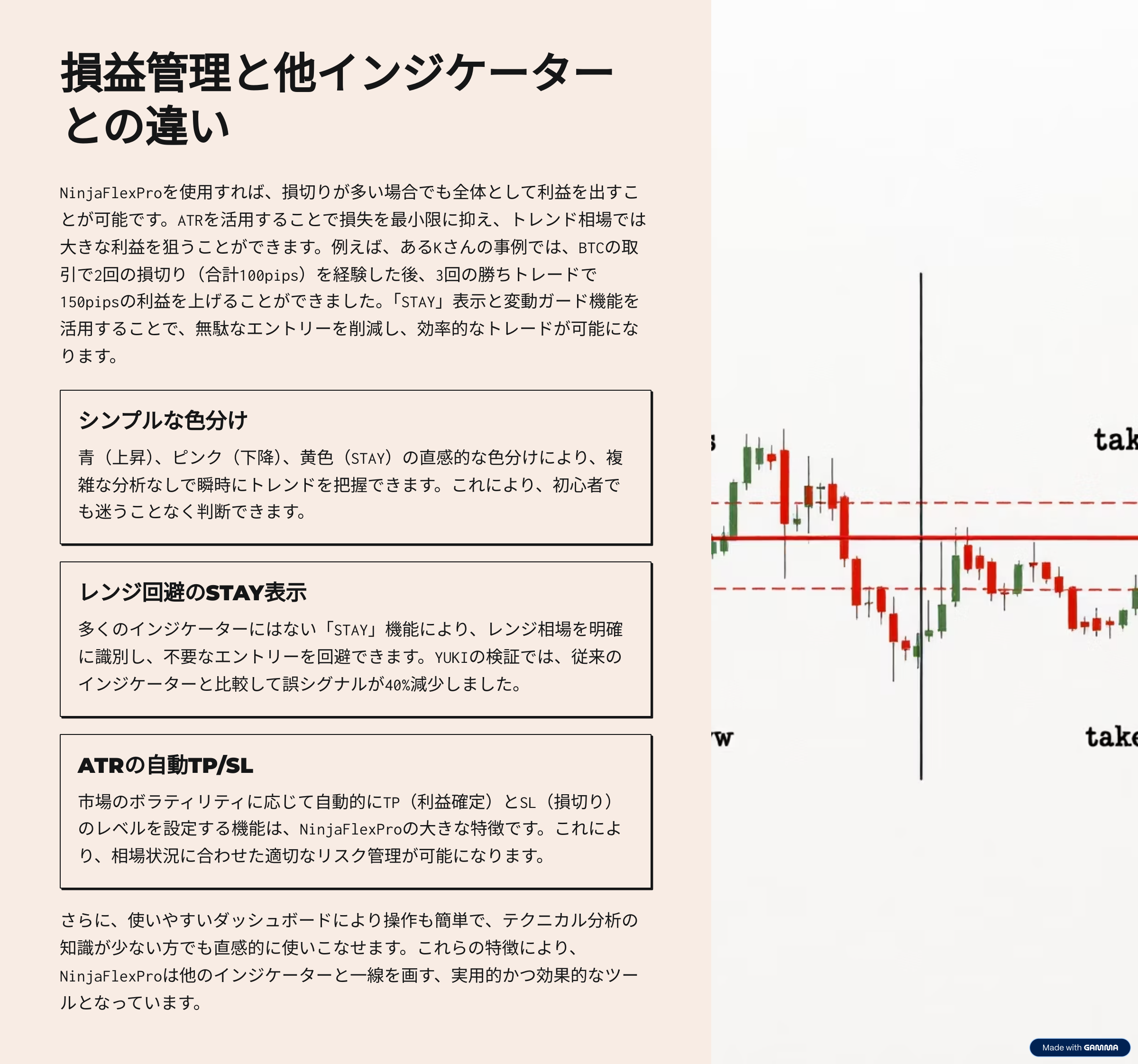NinjaFlexProなら、初心者でもプロ並みのリスク管理が簡単に実現。相場をシンプルに読み解き、自信を持ってトレードを始めましょう。