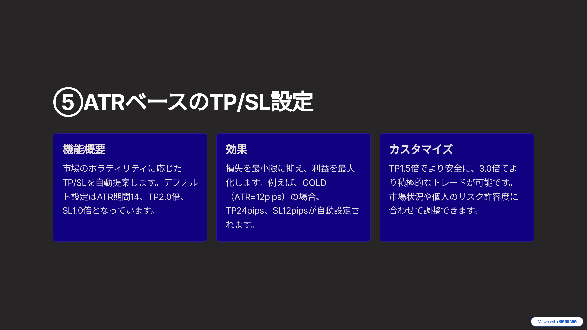ATRベースのTP/SL設定で、初心者でもプロ並みのリスク管理を実現。