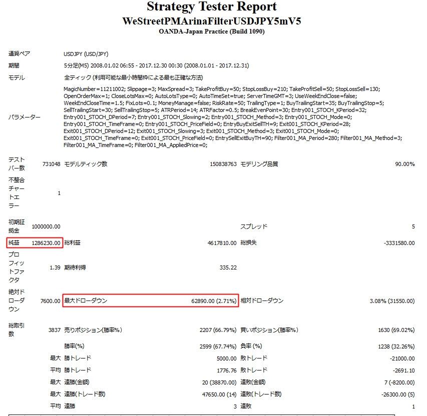 取引回数、最大ドローダウン、利益額からみてもPMAのほうが性能が良いという結果になりました。
